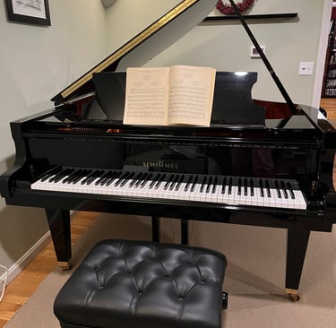 Schimmel, GP169 (5ft 6”), in Ebony high gloss, original owner, 3 lid settings available.